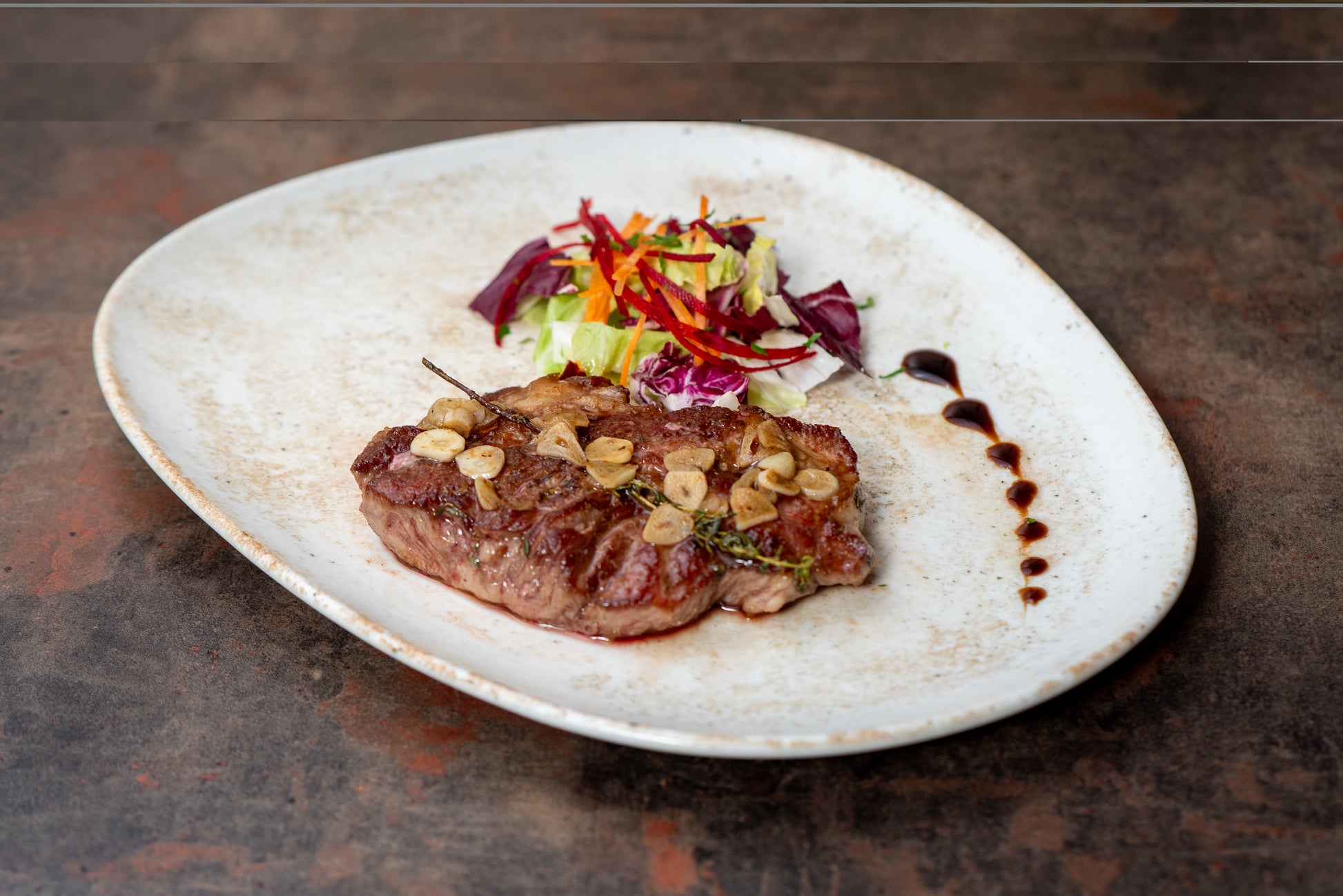 Ceafa iberica la tigaie infuzata cu usturoi-180g