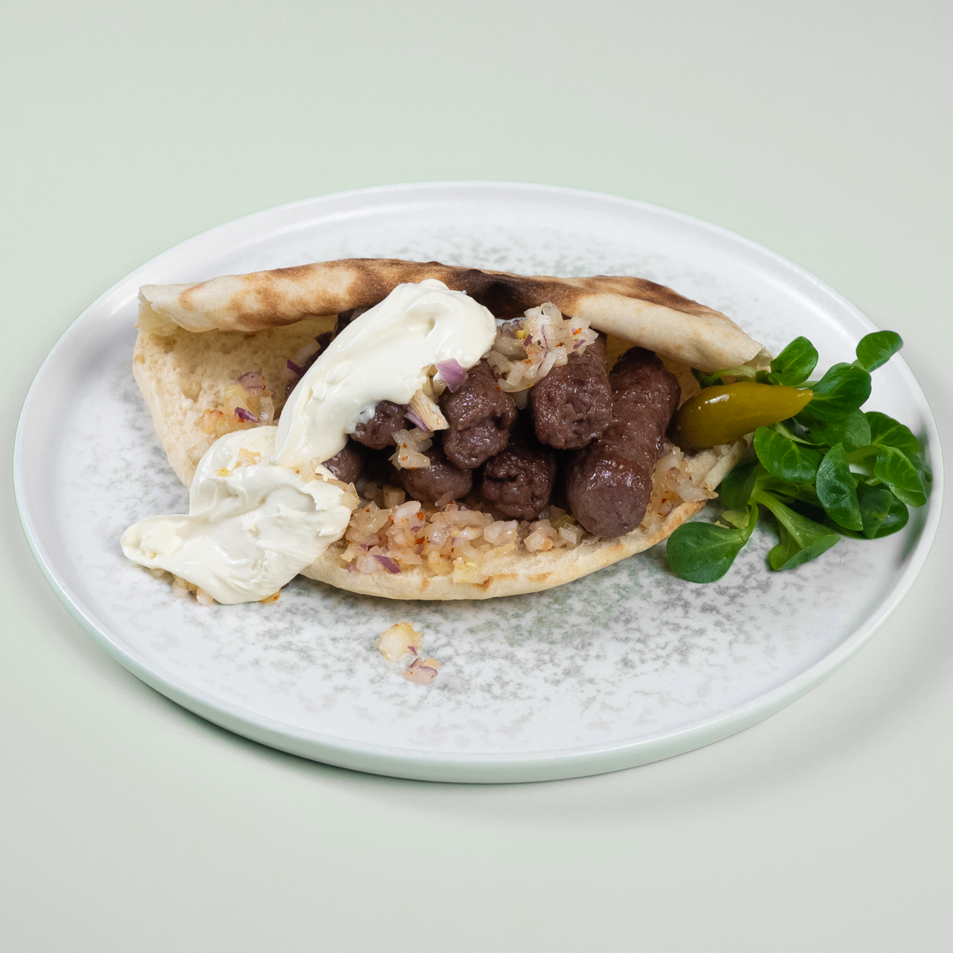 Pasta de pleșcăviță, caimac, ceapă, lipie.