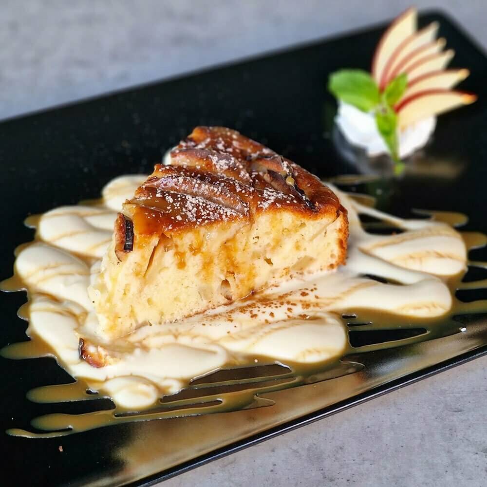Bucurați-vă de o experiență gustativă remarcabilă cu prăjitura noastră cu mere proaspete și sos de vanilie, o reinterpretare sofisticată a unui desert clasic. Cu un amestec de arome bogate și texturi delicioase, această prăjitură vă va fermeca simțurile și vă va încânta papilele gustative în fiecare mușcătură.