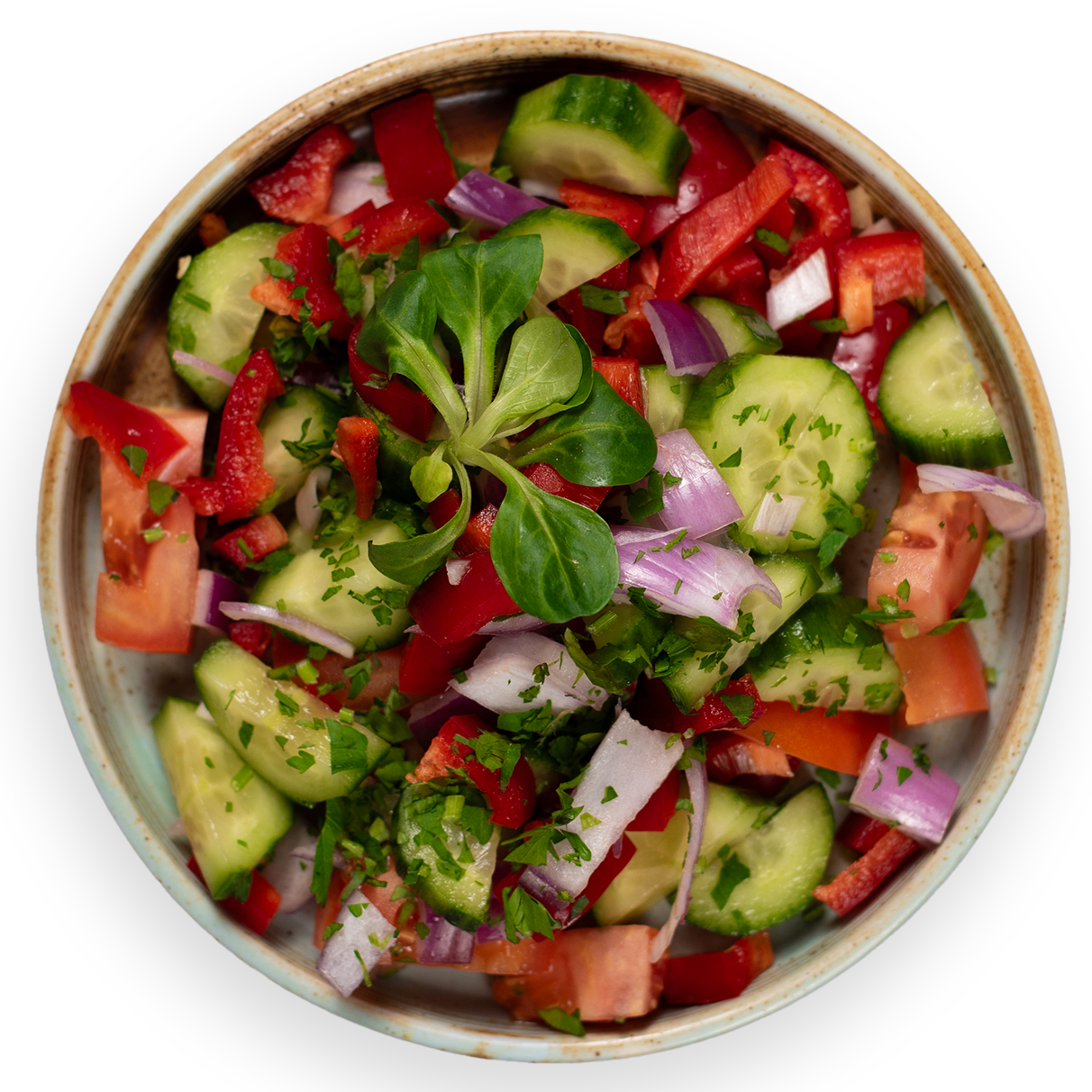 Îmbinați gusturile tradiționale și amintirile plăcute ale bucătăriei de acasă cu salata "ca la mama acasă", o explozie de arome și prospețime care vă va teleporta direct în mijlocul amintirilor copilăriei. Pregătită cu dragoste și grijă, această salată aduce în farfuria dumneavoastră gustul autentic al rețetelor de familie și sentimentul de confort pe care doar acasă îl puteți găsi.